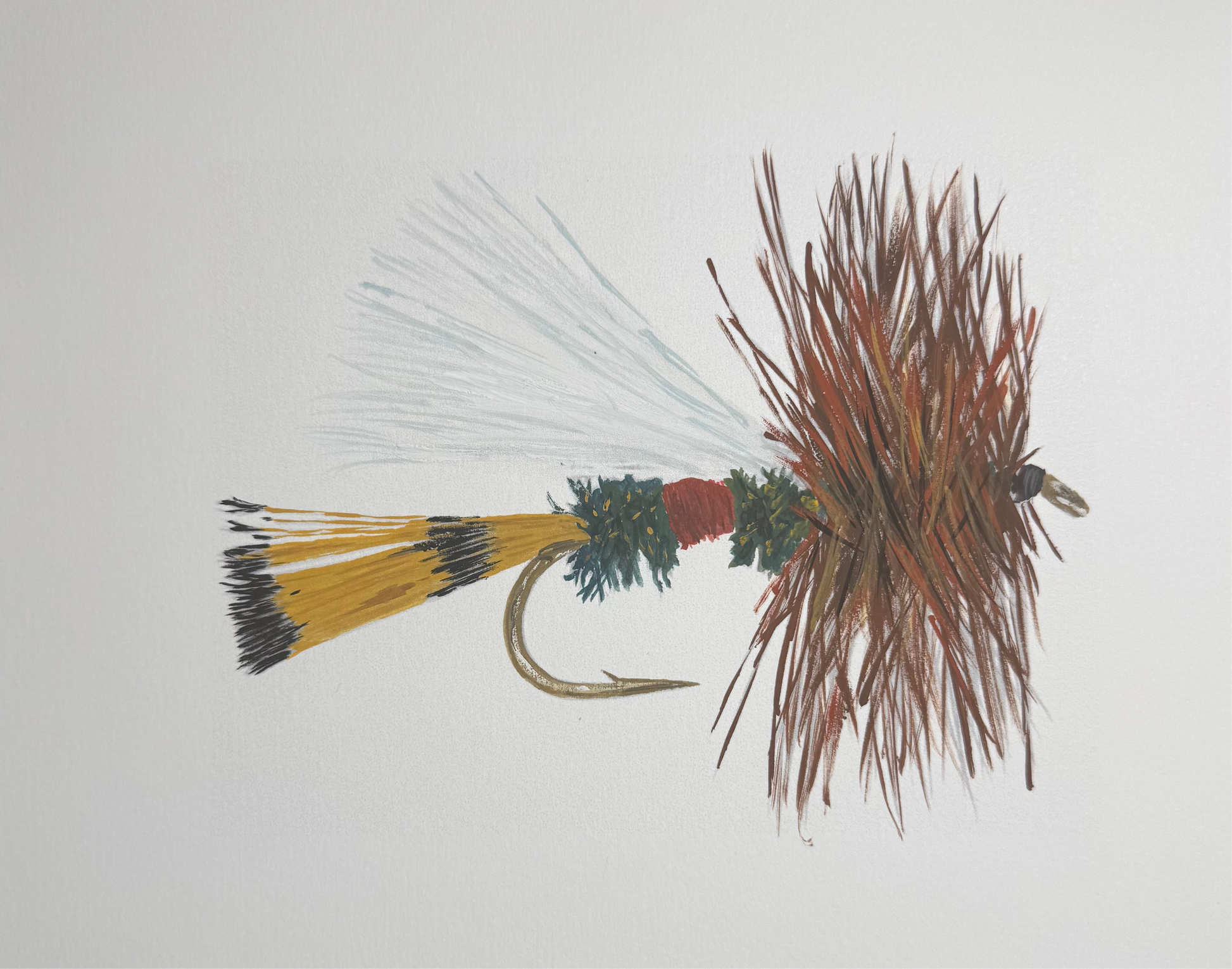 8x10 original painting of a Royal Trude fly. Painted in gouache on archival hot press watercolor paper.